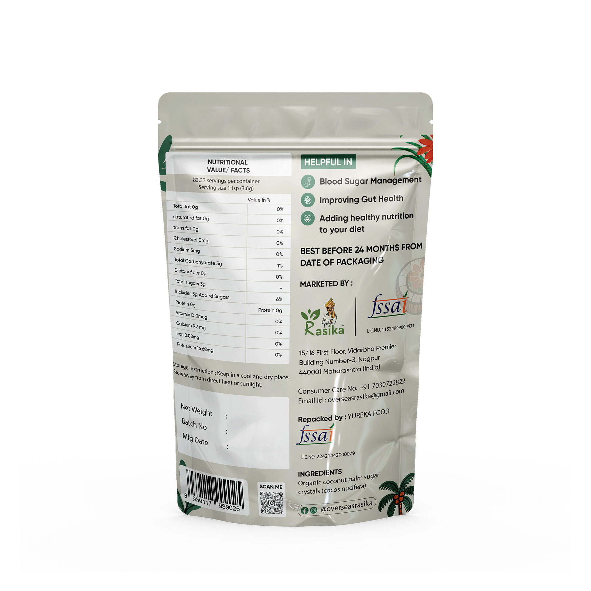 Made from the sap of coconut blossoms, Rasika Coconut Sugar is a natural, unrefined sweetener with a rich caramel flavor. Itβs a healthier substitute for refined sugar with a lower glycemic index.
