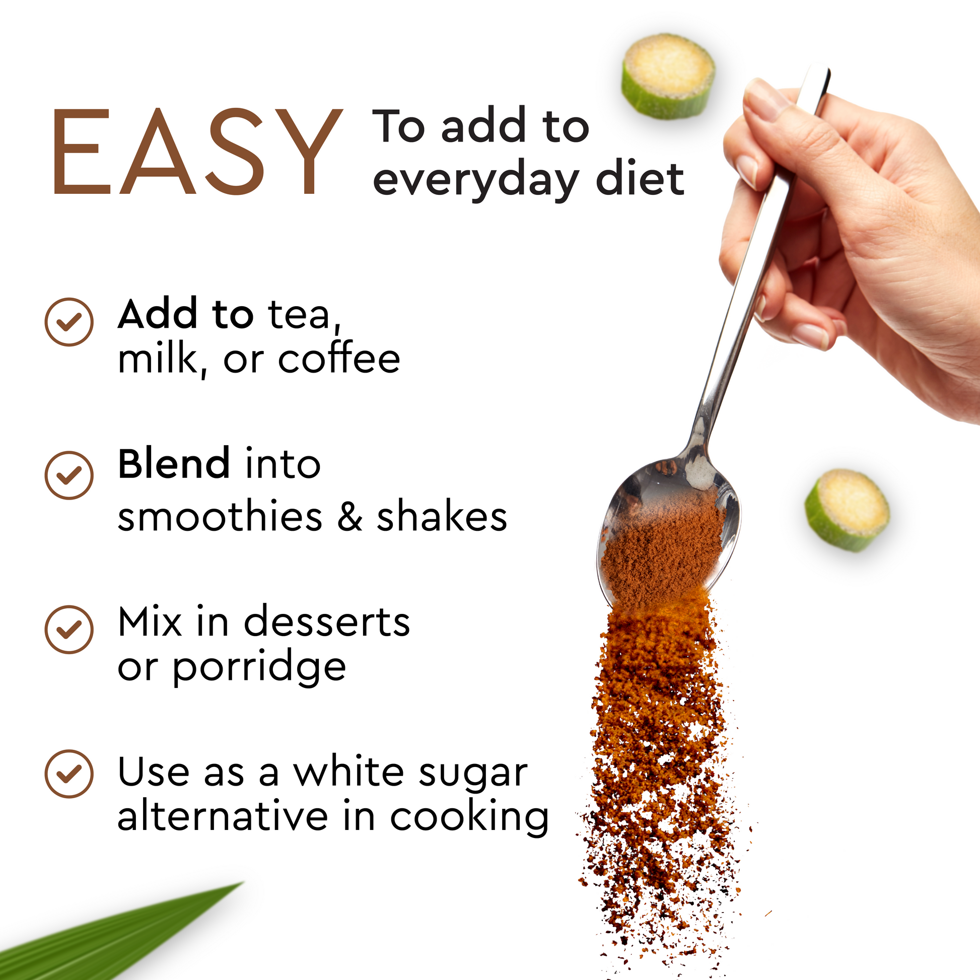 * Add to tea, coffee, or milk.